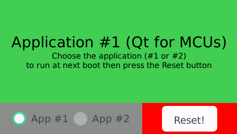 endif()Based on the boot value a different FreeRTOS task is created. Either a Qt Quick Ultralite task running Application #1 or another task implementing Application #2.