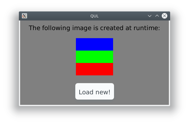 The example shows how to use Qul::ImageProvider and Qul::Image to create and display an image at runtime.
