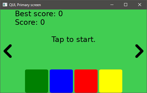 It implements a simple memory game. The player has to select colors in the same order as they appear on the screen. The game ends when the player selects a wrong color. After the last color in the sequence is selected, the best score is updated and a new round begins.
