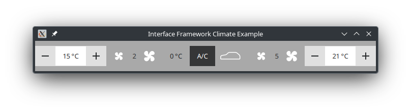 The demo application presents a simple QML climate ui which uses the properties of our auto generated interface.