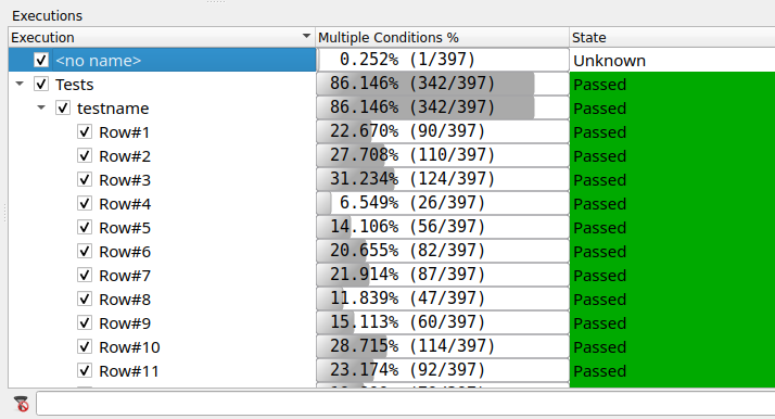 The executions now also have an execution state which identifies whether the test row has passed or failed, and whether that row is validated or not.