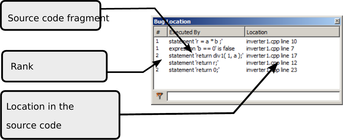 To locate a bug, CoverageBrowser simulates the behavior of a human programmer searching for a single error in the source code. It simplifies the programmer's behavior to a stochastic process that goes from source code line to source code line. After each step, the process tries to jump to the next better error candidate. After an infinite time, we can then look on the probability that a source code line was chosen as the best location of the failure.