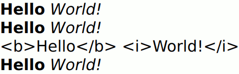 Text { text: "<b>Hello</b> <i>World!</i>" }