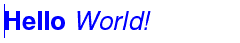 TextEdit { width: 240 text: "<b>Hello</b> <i>World!</i>" font.family: "Helvetica" font.pointSize: 20 color: "blue" focus: true }