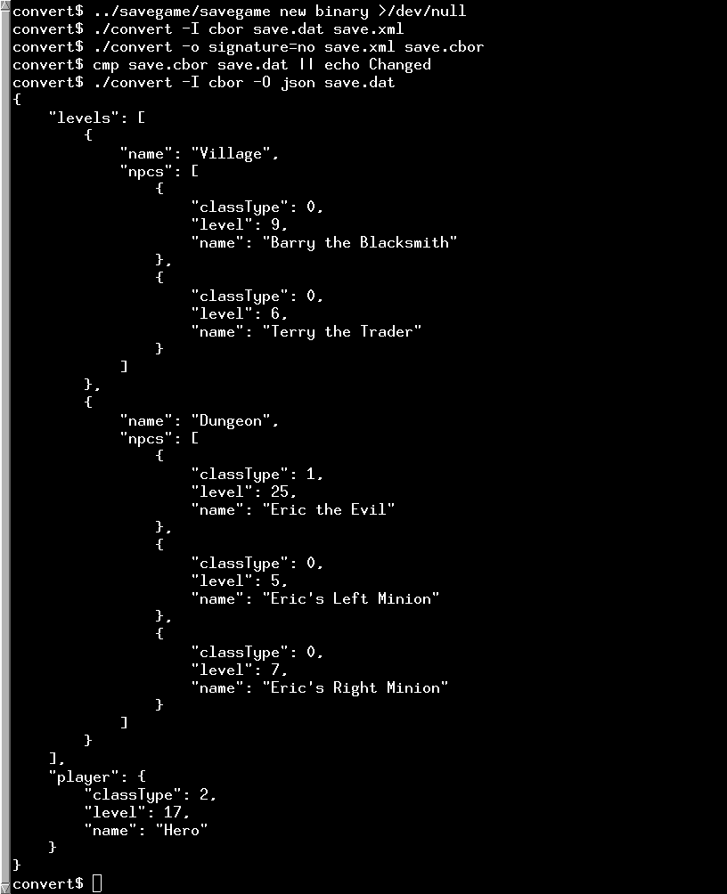 See also Parsing and displaying CBOR data, Saving and Loading a Game, and CBOR Support in Qt.