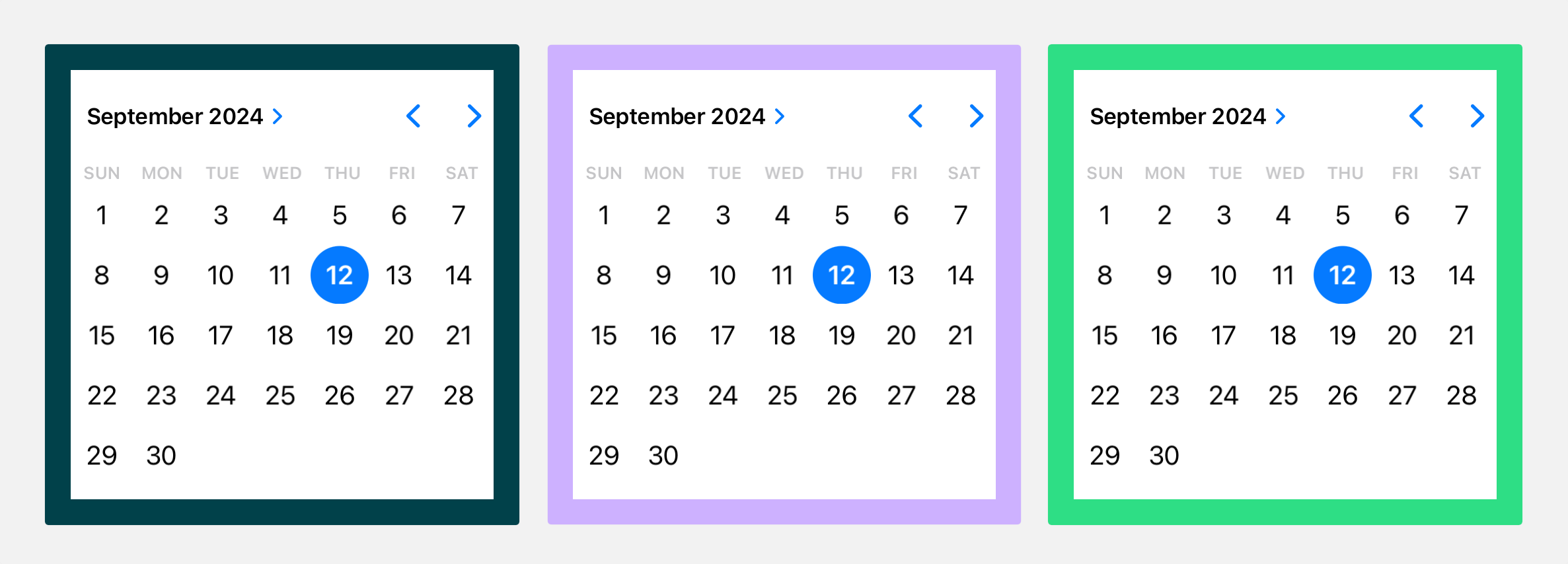 #include <UIKit/UIDatePicker.h> QWindow *createCalendarWindow() { auto *datePicker = [UIDatePicker new]; cleanupFunctions.push_back([=]{ [datePicker release]; }); datePicker.datePickerMode = UIDatePickerModeDate; datePicker.preferredDatePickerStyle = UIDatePickerStyleInline; datePicker.backgroundColor = UIColor.systemBackgroundColor; auto *calendarWindow = QWindow::fromWinId(WId(datePicker)); calendarWindow->setMinimumSize(QSizeF::fromCGSize(datePicker.frame.size).toSize()); return calendarWindow; }