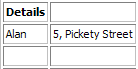 Original TableSuppose we have a 2x3 table of names and addresses. To merge both columns in the first row we invoke mergeCells() with row = 0, column = 0, numRows = 1 and numColumns = 2.