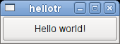 Creates a push button that displays "Hello world!". If hellotr_la.qm was found and contains a translation for "Hello world!", the translation appears; if not, the source text appears.