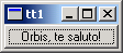 To see the application running in Latin, we have to generate a QM file from the TS file. Generating a QM file can be achieved either from within Qt Linguist (for a single TS file), or by using the command line program lrelease which will produce one QM file for each of the TS files listed in the project file. Generate hellotr_la.qm from hellotr_la.ts by choosing File|Release from Qt Linguist's menu bar and pressing Save in the file save dialog that pops up. Now run the hellotr program again. This time the button will be labelled "Orbis, te saluto!".