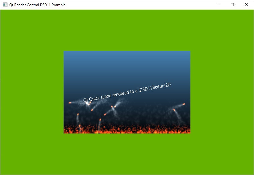 Shows how to render a Qt Quick scene into a texture that is then used by a non-Quick based Direct3D 11 renderer.