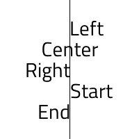 ![]() | QFont font("Titillium Web", 22); p->setFont(font); p->fillRect(100, 0, 1, 200); p->setTextAlign(QCanvasPainter::TextAlign::Left); p->fillText("Left", 100, 40); p->setTextAlign(QCanvasPainter::TextAlign::Center); p->fillText("Center", 100, 70); p->setTextAlign(QCanvasPainter::TextAlign::Right); p->fillText("Right", 100, 100); p->setTextAlign(QCanvasPainter::TextAlign::Start); p->fillText("Start", 100, 130); p->setTextAlign(QCanvasPainter::TextAlign::End); p->fillText("End", 100, 160); |