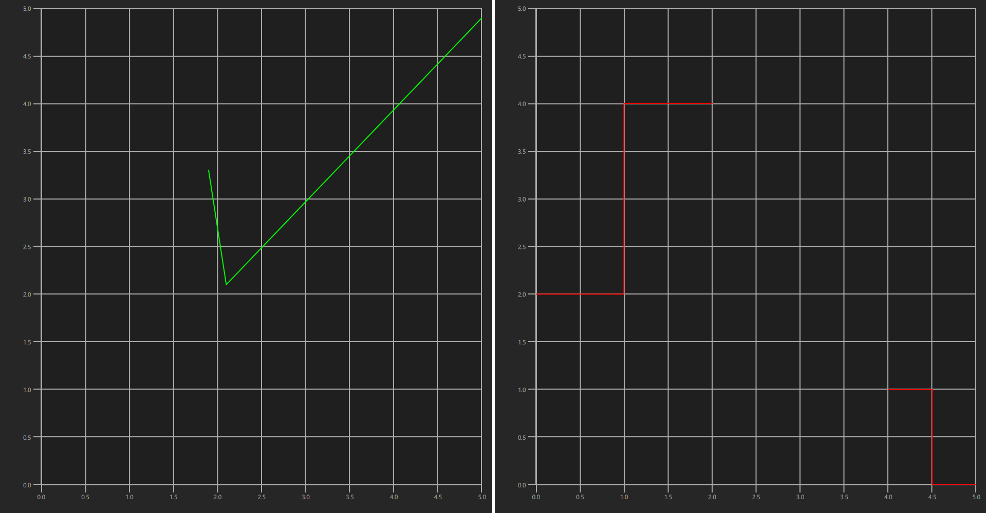 QLineSeries *series = new QLineSeries(); series->append(0, 2); series->append(2, 4); series->append(3, std::numeric_limits<qreal>::quiet_NaN()); series->append(4, 1); series->append(5, 0); series->setLineStyle(QLineSeries::LineStyle::StepCenter); series->setColor(Qt::red);