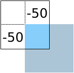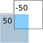The following images demonstrate a flickable being flicked in various directions and the resulting contentX and contentY values. The blue square represents the flickable's content, and the black border represents the bounds of the flickable.