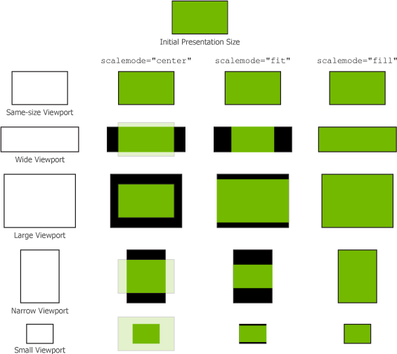 The Scale Mode attribute specifies how large the initial presentation is rendered.