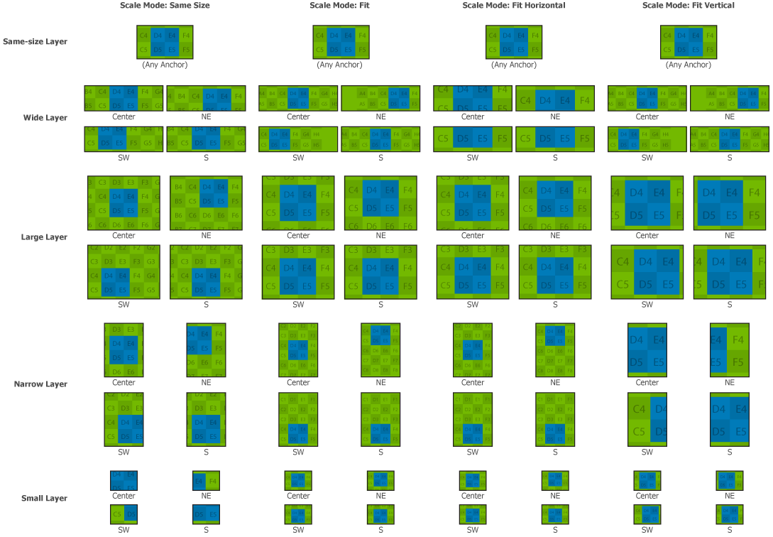 - Camera scaling and anchoring controls how the content adjusts (panning and scaling) as the layer size changes.