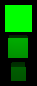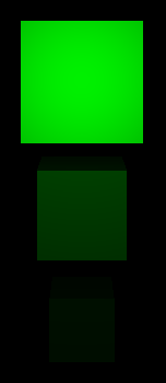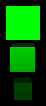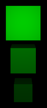 The table below shows the difference between linear and exponential fade. In this example the Z position of the light is 0, while the Z position of the cubes are 200, 400 and 700 respectively. The brightness of the light is 200.