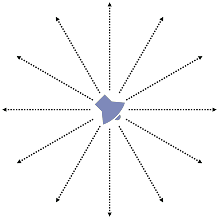 The point light can be described as a sphere, emitting light with equal strength in all directions from the center of the light. This is similar to the way a light bulb emits light.