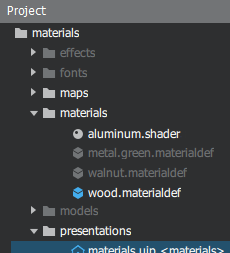 Note: Basic materials are using the .materialdef file extension, while shaders are using the .shader file extension. For backward compatibility, also the .material file extension is valid for shaders.