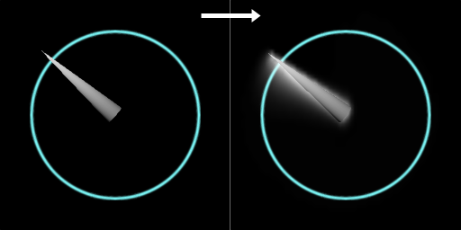 In the image shown above the blue ring is placed on a second layer underneath the layer with the motion blur effect applied. This both allows the needle to leave a blur trail over the ring, and also prevents the ring from having a blurry blue halo around it.