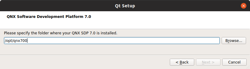 - Select the folder where your QNX SDP is installed.