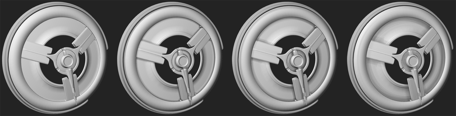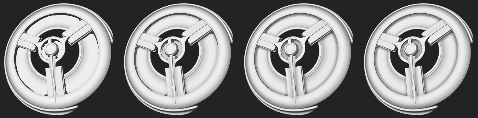 - AO Softness - How smooth the edges of the AO shading are. The following graphic illustrates a variety of softness values, going from