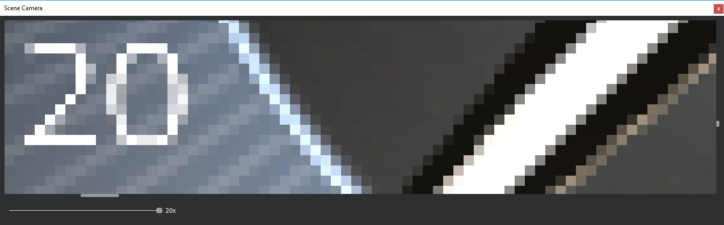 The scene camera palette allows you to zoom in to pixel perfect level with the scene camera.