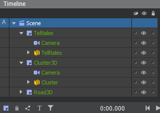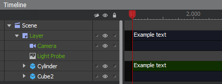 Note: This is only an editing convenience within the timeline palette, and has no effect on the visibility of elements rendered in the scene at runtime.