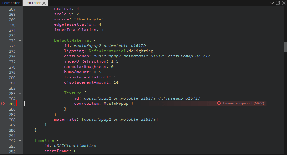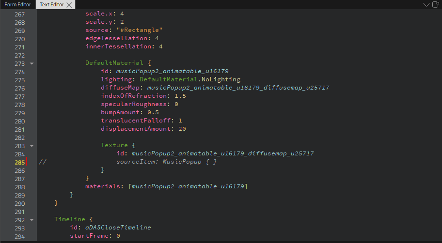something.shaderneeds to be copied toShader { stage: Shader.Vertex; shader: "vertex shader code here" }inside theCustomMaterial. Fragment shader part needs to be copied toShader { stage: Shader.Fragment; shader: "fragment shader code here" }. - Properties in
