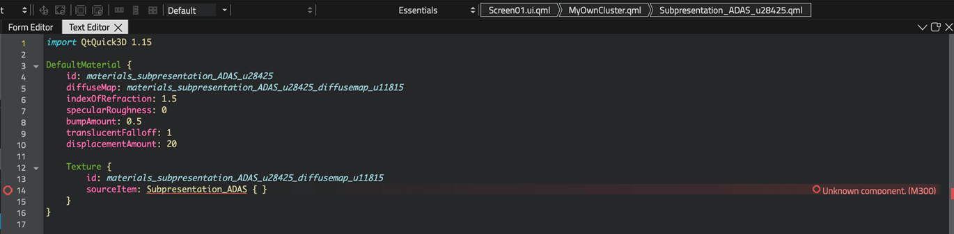 - Return to Qt Design Studio and enter the MyOwnCluster component. The QML stream component now appears in My 3D Components.
