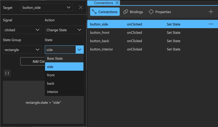 clicked, Action toChange State, State Group torectangleand State tosidein the respective drop-down menus. - Select the