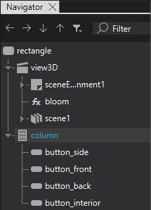 - Repeat step 6 to 8 three times to create a total of four buttons. Set the ID for the three last buttons to button_front, button_back, and button_interior. Change the text on the buttons accordingly.