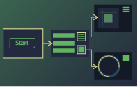 | Create a UI concept by using preset and custom 2D and 3D components and designing application flows. Create scalable layouts with all your screens and controls in place. | Create an animated UI prototype with functioning UI controls and logic and validate it on the desktop or mobile or embedded devices. | Create 2D and 3D assets and design UIs in imaging and design tools. Then bring your designs over to Qt Design Studio where you can combine them into one UI. | Use visual editors that generate the code for you and deliver the code to developers for adding more code and preparing the application for production. You can use version control to pass changes back and forth when necessary. |