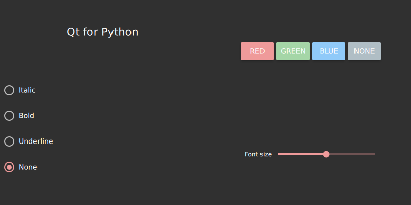 A Python application that demonstrates how to load a QML file using Material design, to change the look of text (see Styling Qt Quick Controls).