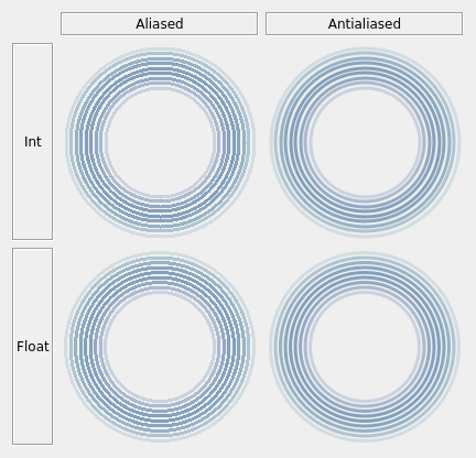 Demonstrates the improved quality that antialiasing and floating point precision gives.