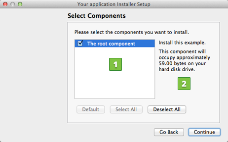 <Title>element sets the installer name and displays it on the title bar (1). - The