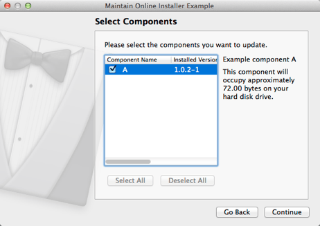 If you then run the maintenance tool from the previous installation and select Update Components, you should see that an update of package A is available.