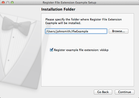 component.loaded.connect(this, addRegisterFileCheckBox);We use the addRegisterFileCheckBox() function to display a check box for registering the generated file type on the last page of the installer. We hide the page when updating and uninstalling: