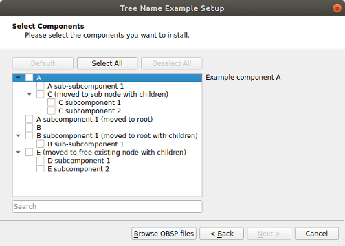 Tree Name illustrates how to specify custom locations for components in the component tree view and how that influences the installation and maintenance processes.