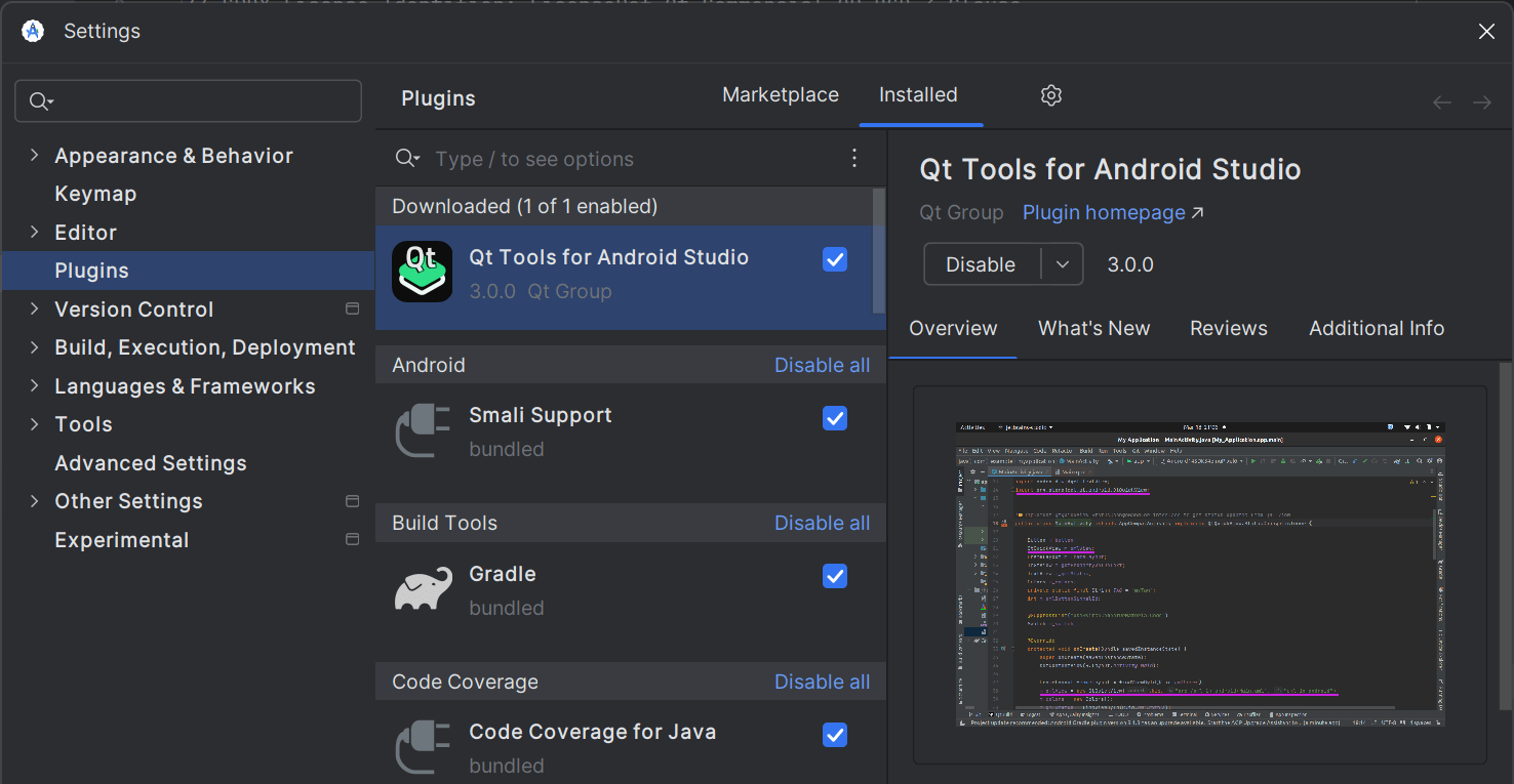 Here's how you can manually download and install the Qt Tools for Android Studio plugin.