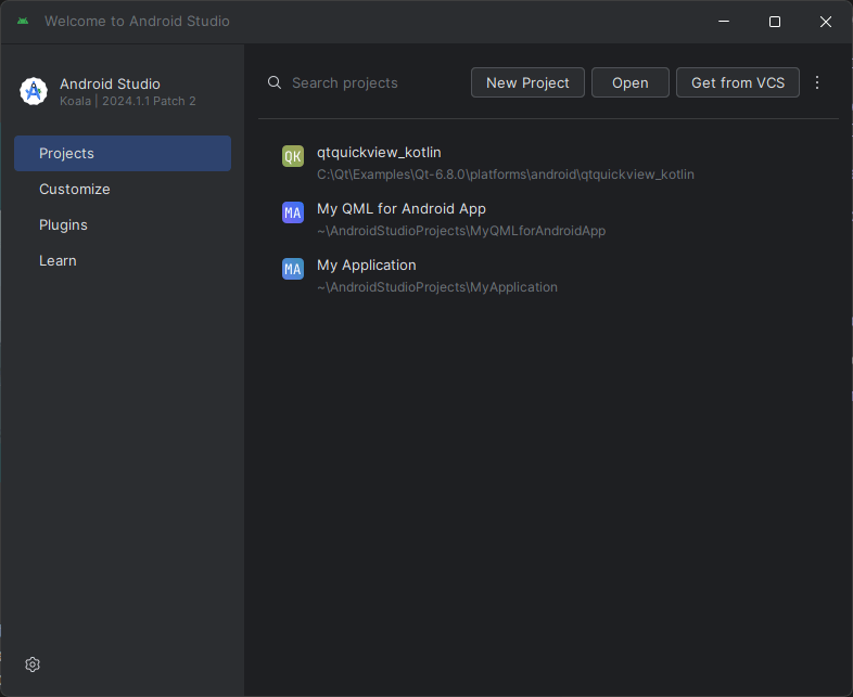 Follow the configuration instructions in the Qt Gradle Plugin documentation. Take note of your Qt install path, as you will need it when configuring your QML for Android projects in Android Studio.