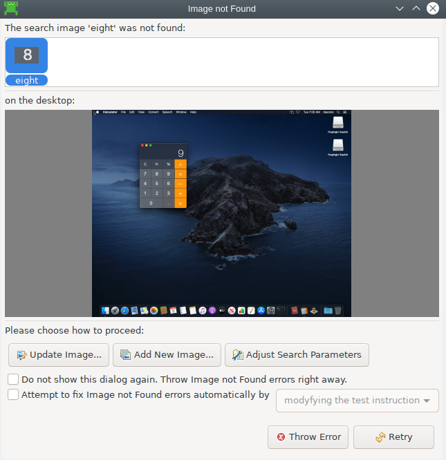 - If you want to apply a default tolerant image search for your test suite based on how closely the current actual matches the expected, click Attempt to fix image search errors automatically followed by Change Defaults.
