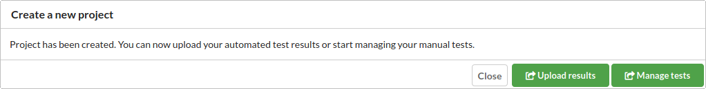 To create a new Test Center project, you usually enter a new project name during Squish test results upload, as instructed in Manual upload via the UI. However, this approach is not suitable for a new project that will be dedicated to manual tests or when you plan to import Squish tests using the repository integration. For that purpose, select Create Project within the Project search dialog on the dashboard.
