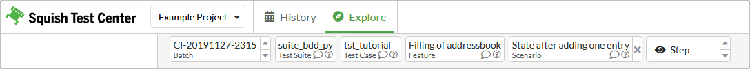 The last element indicates the granularity of the view. That is, the level of the test-structure you are currently looking at. Furthermore, it enables you to select the granularity. For example: Test Suite > Test Case > Feature > Scenario > Step > Section.
