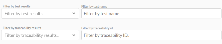 To focus on specific tests or traceability items, use the Filters Section. If you need more space for the table, click the at the top of this section. You can filter the table by these options:
