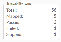 The view also provides key statistics about the traceability items and their results. You can check: