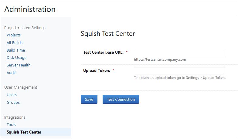 Test Center plugin for TeamCity adds functionality to send results to Test Center. Results need to be obtained from an Agent as Artefacts and are sent to Test Center from TeamCity Server. Test Center tab is added to a Build Page containing a link to view results in Test Center. The plugin can be integrated with Squish Runner plugin (version 2.4 and above), where Squish Runner plugin is responsible for executing Squish tests and Test Center plugin is responsible for sending them to Test Center.