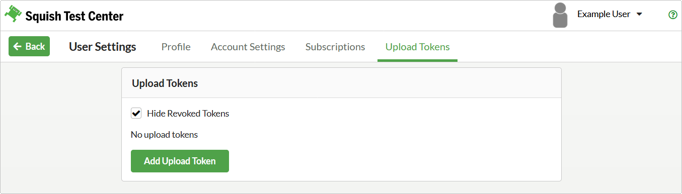 To create upload tokens, select Upload Tokens in the User Settings view, and then click Add Upload Token. This option and tab are available only for users with the upload role set in the User Management view.